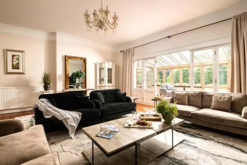 This luxurious holiday home features a pool with a view, a hot tub and a fireplace. Guests will find a stovetop, a refrigerator, a dishwasher and kitchenware in the kitchen. The holiday home also offers a barbecue. The spacious holiday home provides a flat-screen TV with streaming services, a washing machine, a private entrance, a tea and coffee maker as well as garden views. The unit offers 12 beds.