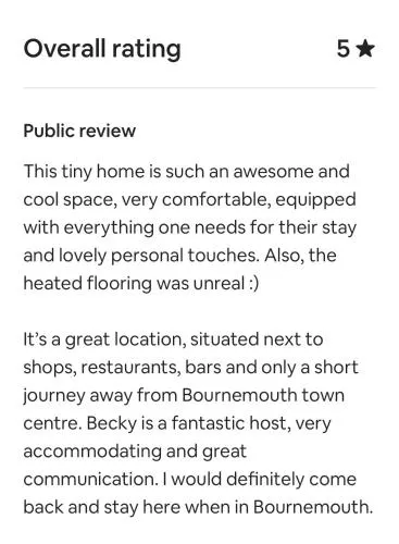 Reviews - Tiny Home, Boscombe Manor