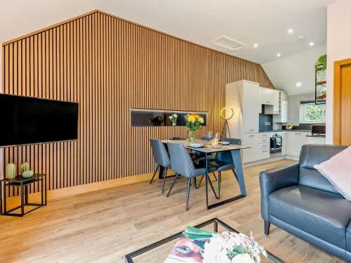 The holiday home has 2 bedrooms, 2 bathrooms and a kitchen. Guests can make meals in the fully equipped kitchen that features a dishwasher, kitchenware and an oven. This holiday home features a high chair for children, a TV and garden views. The unit has 2 beds.
