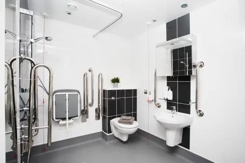 | Miscellaneous | Emergency cord in bathroom, Fire extinguishers, 24-hour security, Key card access, Security alarm, Smoke alarms, CCTV in common areas, CCTV outside property, Lift, Lower bathroom sink, Higher level toilet, Toilet with grab rails, Wheelchair accessible, Non-smoking rooms, Designated smoking area, Non-smoking throughout, Facilities for disabled guests, Family rooms, Heating |