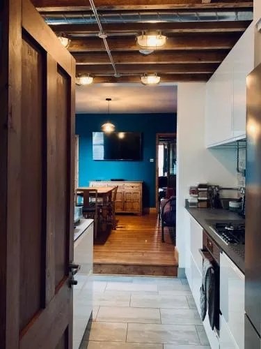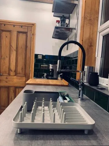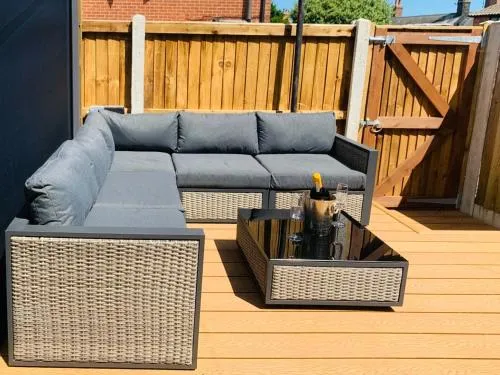 Featuring a private entrance, this holiday home consists of 1 living room, 2 separate bedrooms and 2 bathrooms with a walk-in shower and a bath. The fully equipped kitchen features a stovetop, a refrigerator, a dishwasher and kitchenware. The holiday home provides a flat-screen TV with streaming services, a washing machine, soundproof walls, a tea and coffee maker as well as garden views. The unit offers 5 beds.