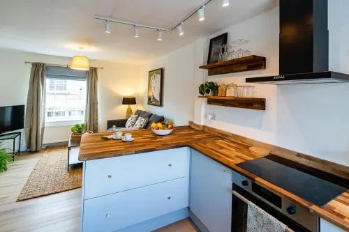 The fully equipped kitchen has a stovetop, a refrigerator, a dishwasher and kitchenware. The apartment features a flat-screen TV with streaming services, a washing machine, a private entrance, a tea and coffee maker as well as a quiet street view. The unit has 2 beds.