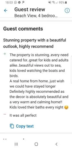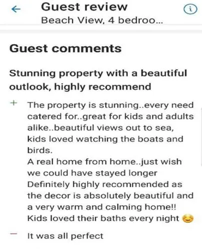 Reviews - 4 bedroom house opposite the sea