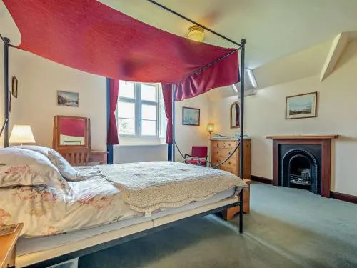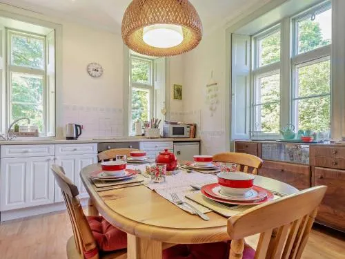 This holiday home features a fireplace. The holiday home has 2 bedrooms, 2 bathrooms and a kitchen. The well-equipped kitchen features a refrigerator, a dishwasher, kitchenware and an oven. The holiday home features a washing machine, a high chair for children, heating, a TV, as well as garden views. The unit has 3 beds.