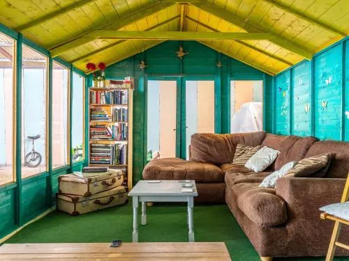 The holiday home has 3 bedrooms, 1 bathroom and a kitchen. The kitchen features a refrigerator, kitchenware and an oven. This holiday home features a high chair for children, heating, a TV and garden views. The unit has 5 beds.