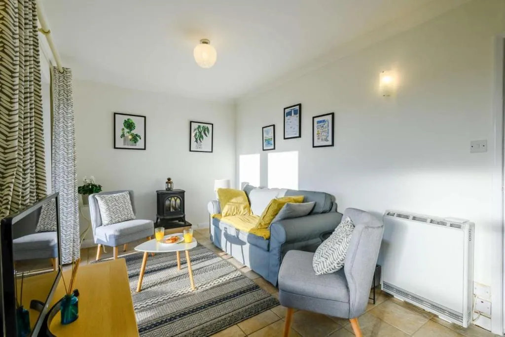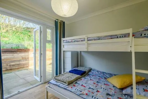 The holiday home features 2 bedrooms, 1 bathroom and a kitchen. Guests will find a dishwasher, kitchenware, an oven and a microwave in the well-equipped kitchen. The holiday home also offers a barbecue. The holiday home provides a TV, a washing machine, a high chair for children, heating as well as garden views. The unit offers 2 beds.