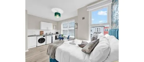 Daud: "Blue Horizon: Captivating Studio Cityscape is situated in a prime location in London, just a short distance from Wood Green Metro Station (1.4km), Alexandra Palace (3km) and Tottenham Hale (4km). The property is also close to Emirates Stadium (4.8km), Southgate London (6.3km) and King's Cross Theatre (7.5km). For nature lovers, London Zoo is just 8.5km away, while Euston Station is a mere 8.6km from the apartment. Camden Market can be reached in approximately 7.8km, and King's Cross Station is just 7.9km away. The nearest airport, London City Airport, is about 17km from our property."