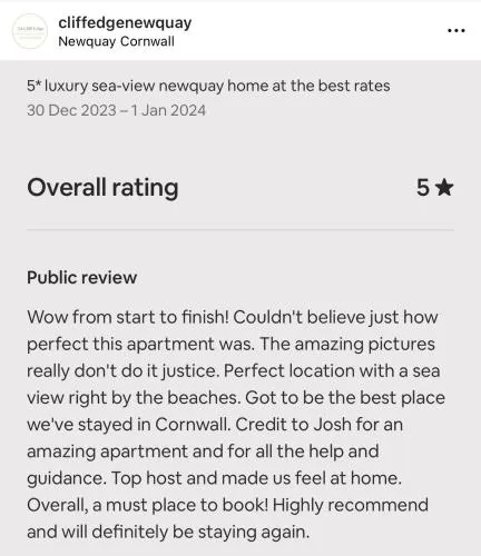 Reviews - 34 Cliff Edge 2nd floor Newquay luxury sea-view residence