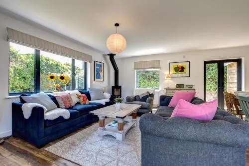 This holiday home's special feature is the fireplace. Boasting a private entrance, this holiday home includes 4 bedrooms and 3 bathrooms with a hairdryer. The well-fitted kitchen has a dishwasher, kitchenware and an oven. The holiday home offers a washing machine, tumble dryer, a barbecue, a TV, as well as garden views. The unit has 5 beds.
