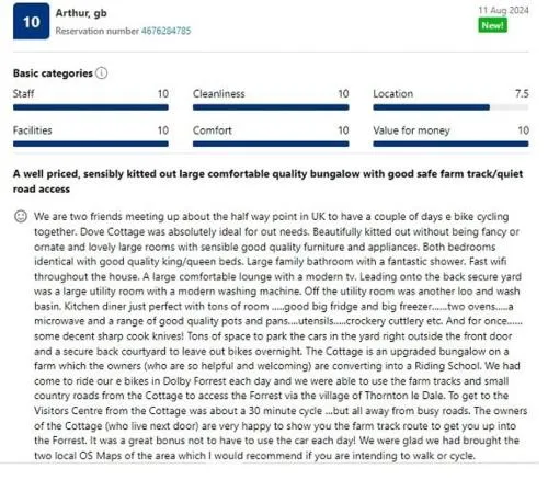 Reviews - LetAway - Dove Cottage Pickering