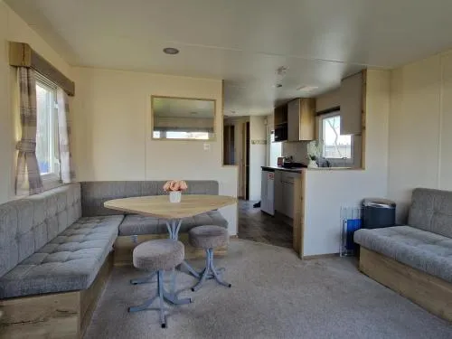 This mobile home features a fireplace. Boasting a private entrance, this mobile home features 1 living room, 3 separate bedrooms and 2 bathrooms with a shower and a hairdryer. Guests will find a stovetop, a refrigerator, kitchenware and an oven in the well-fitted kitchen. The mobile home also comes with a barbecue. Featuring a terrace with sea views, this mobile home also features soundproof walls and a flat-screen TV with cable channels. The unit has 6 beds.