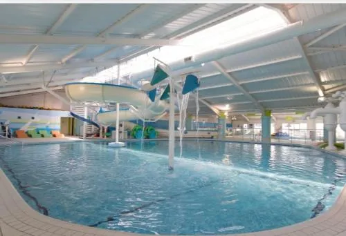 | Pool and wellness | Outdoor pool (seasonal), Indoor pool (all year), Private beach area, Kids' pool, Fitness/spa locker rooms, Indoor pool, Water slide, Outdoor pool |