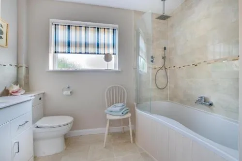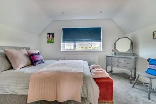 The fireplace is the standout feature of this holiday home. Boasting a private entrance, this holiday home also comes with 4 separate bedrooms and 2 bathrooms with a hairdryer. The well-equipped kitchen has a dishwasher, kitchenware, an oven and a microwave. The holiday home features a TV, a washing machine, tumble dryer, a barbecue as well as garden views. The unit has 5 beds.