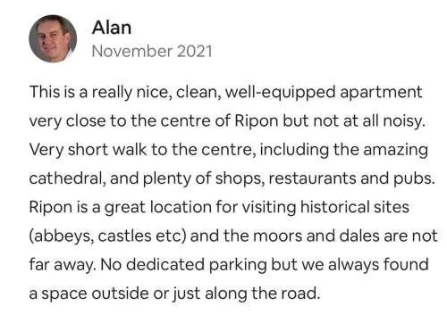 Reviews - Central Ripon apartment - view of the Cathedral!