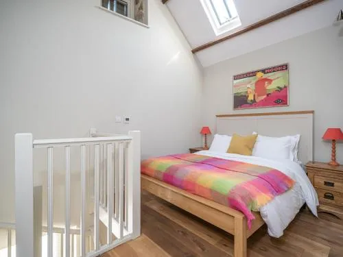 Guests will have a special experience as the holiday home features a fireplace. The holiday home features 2 bedrooms, 2 bathrooms and a kitchen. The well-fitted kitchen has a refrigerator, kitchenware and an oven. The holiday home provides a washing machine, a high chair for children, heating, a TV, as well as garden views. The unit offers 2 beds.