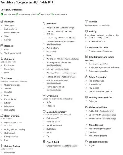 | Activities | Tennis court, Bingo, Live sport events (broadcast), Live music/performance, Tour or class about local culture, Walking tours, Pub crawls, Beach, Water park, Golf course (within 3 km), Fishing, Bowling, Mini golf |