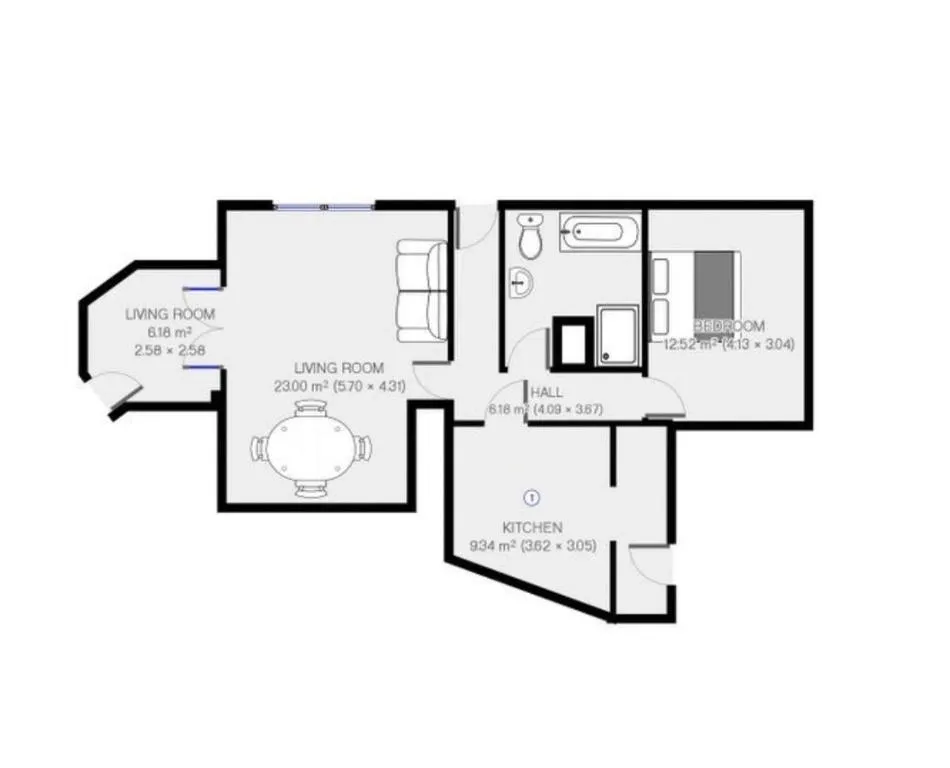 1.2 km from centre