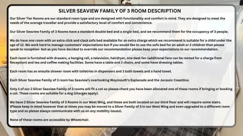 We do not offer disabled room types, but we have tried to make the Upper Ground Floor Rooms as accessible as possible. But please check with us before booking that these rooms are available and that they suit your needs.